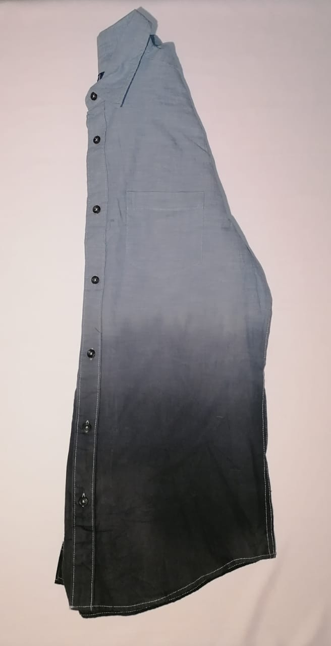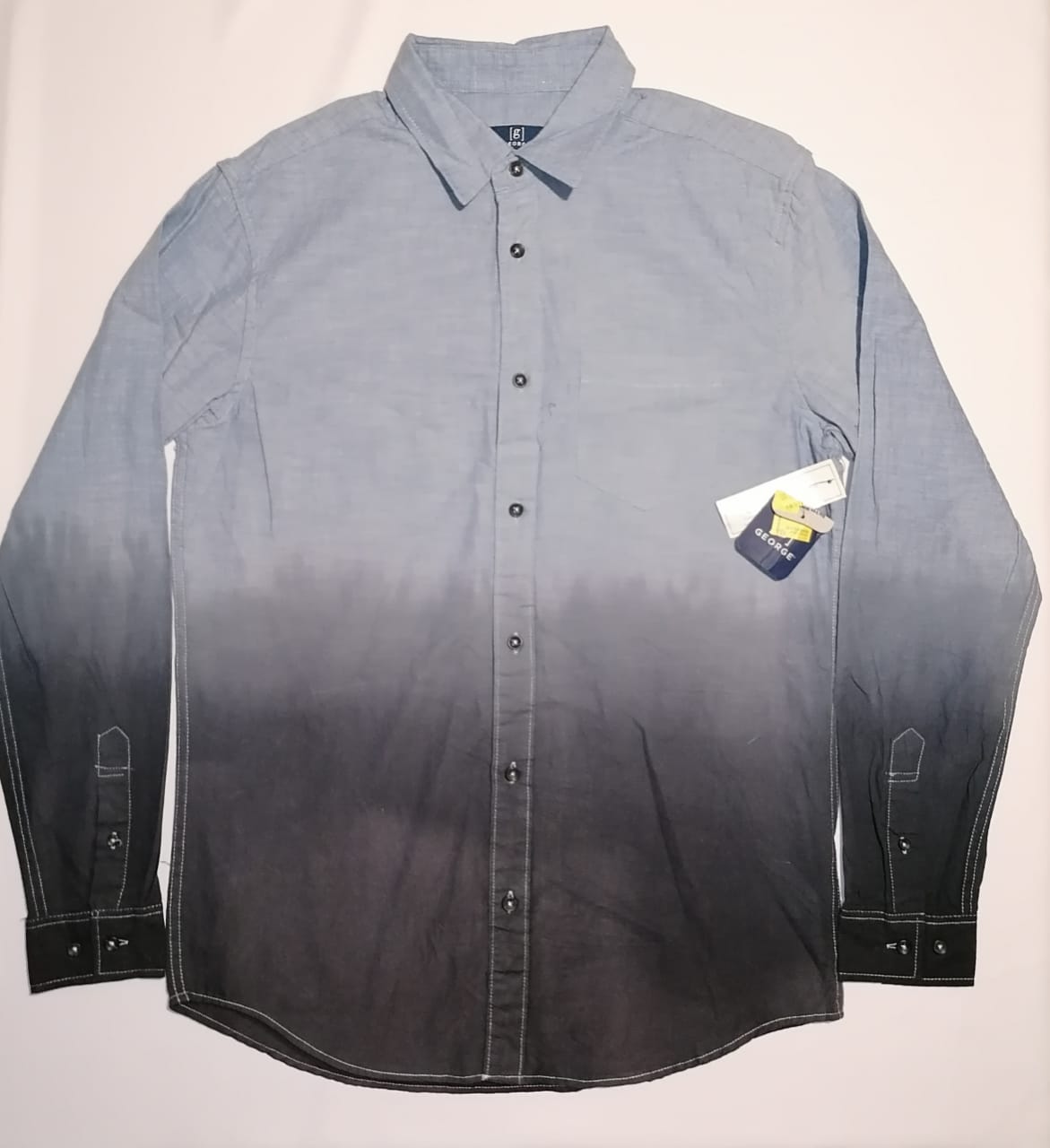 Camisa George color azul claro con un degradado al color negro, talla mediana.