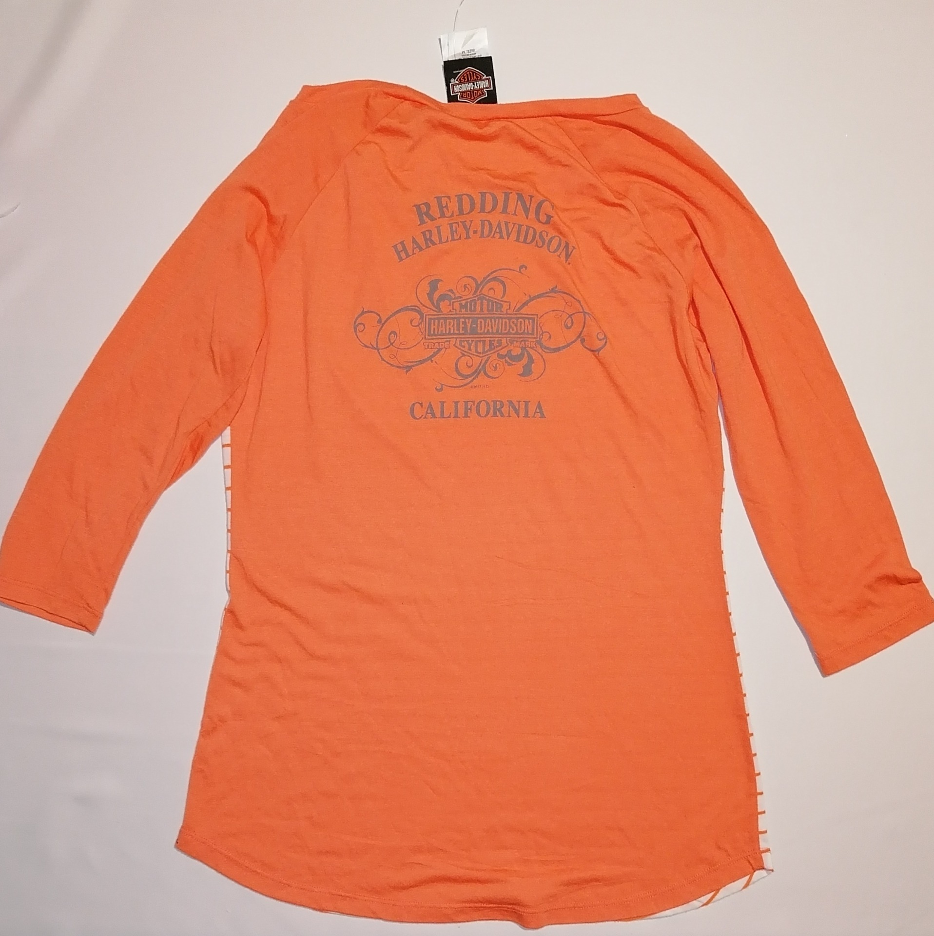 Playera Harley Davidson color naranja con blanco, talla mediana.